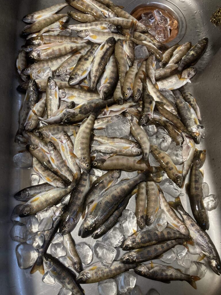 (中久保) 上北山木和田より上釣りました。サビも無く、腹を出すと手に脂がまとわりつく、コンディションの良い、よく肥えたアマゴが釣れました。大量羽化あり、魚は上を向いているようで、ライズもけっこうありましたよ。