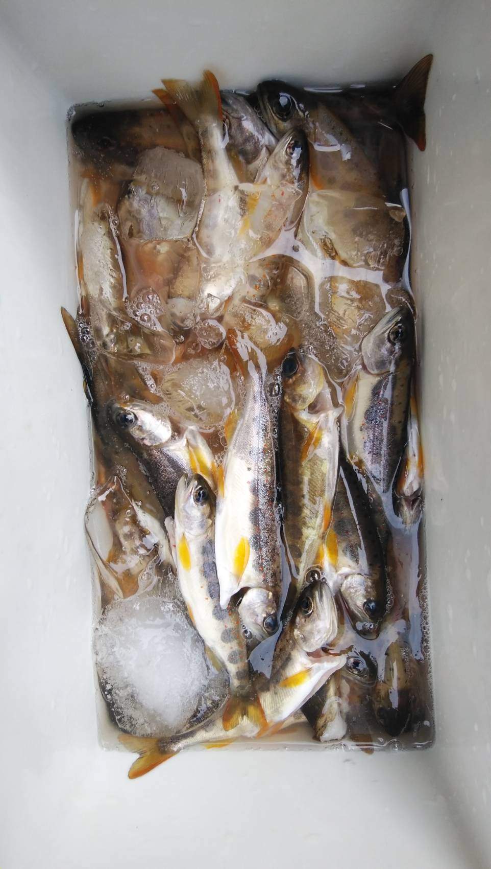 5㎝位の高水、54匹 でした、田中さんも50匹位です